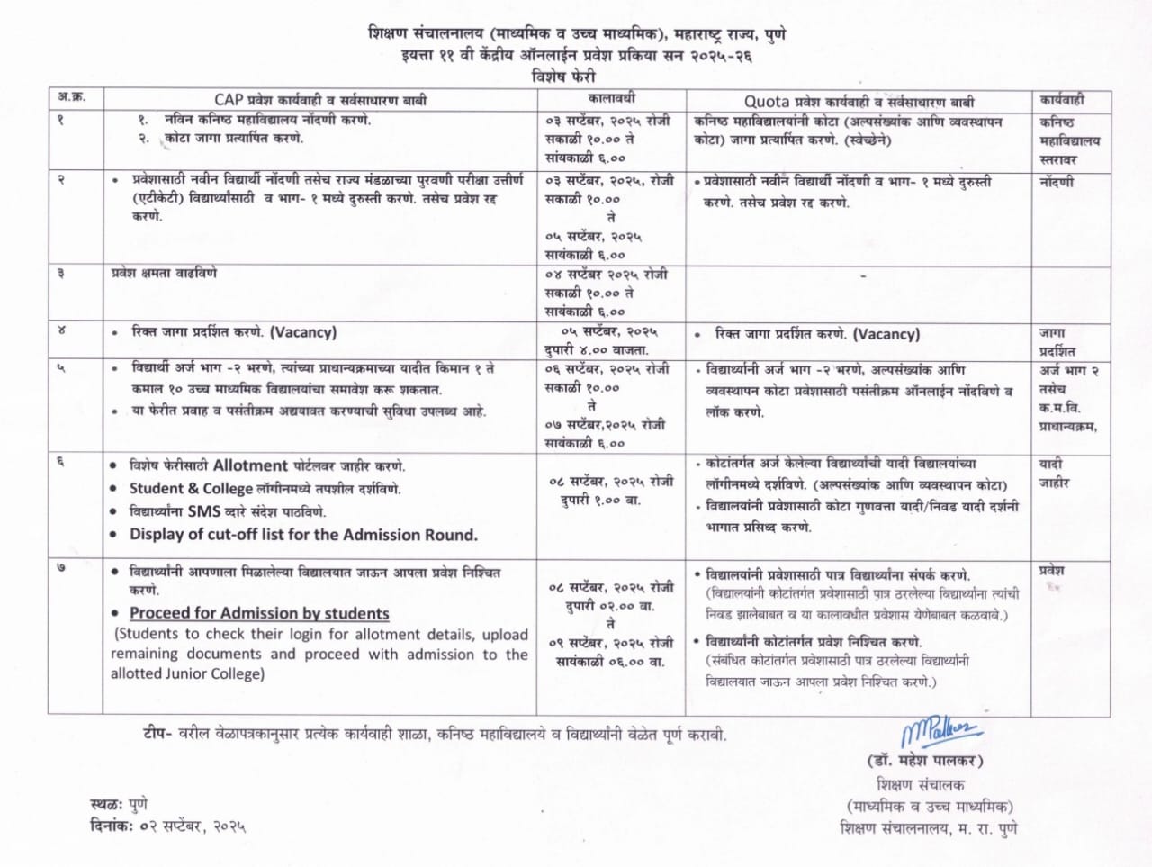 FYJC Admissions Special Round Circular