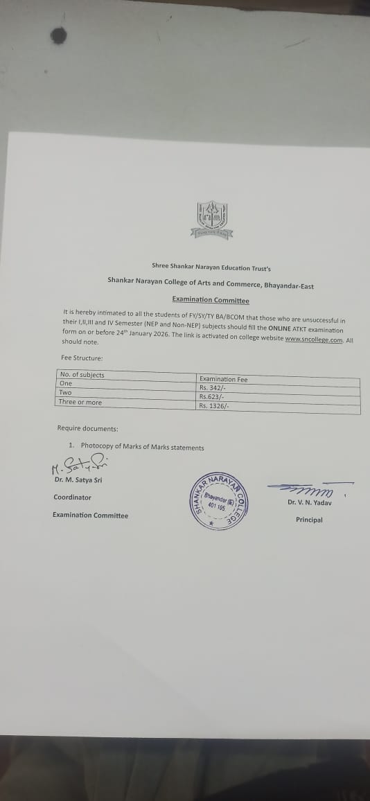 Notice Regarding ATKT Examinations March -April-2026