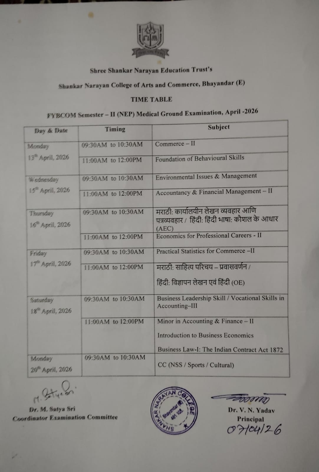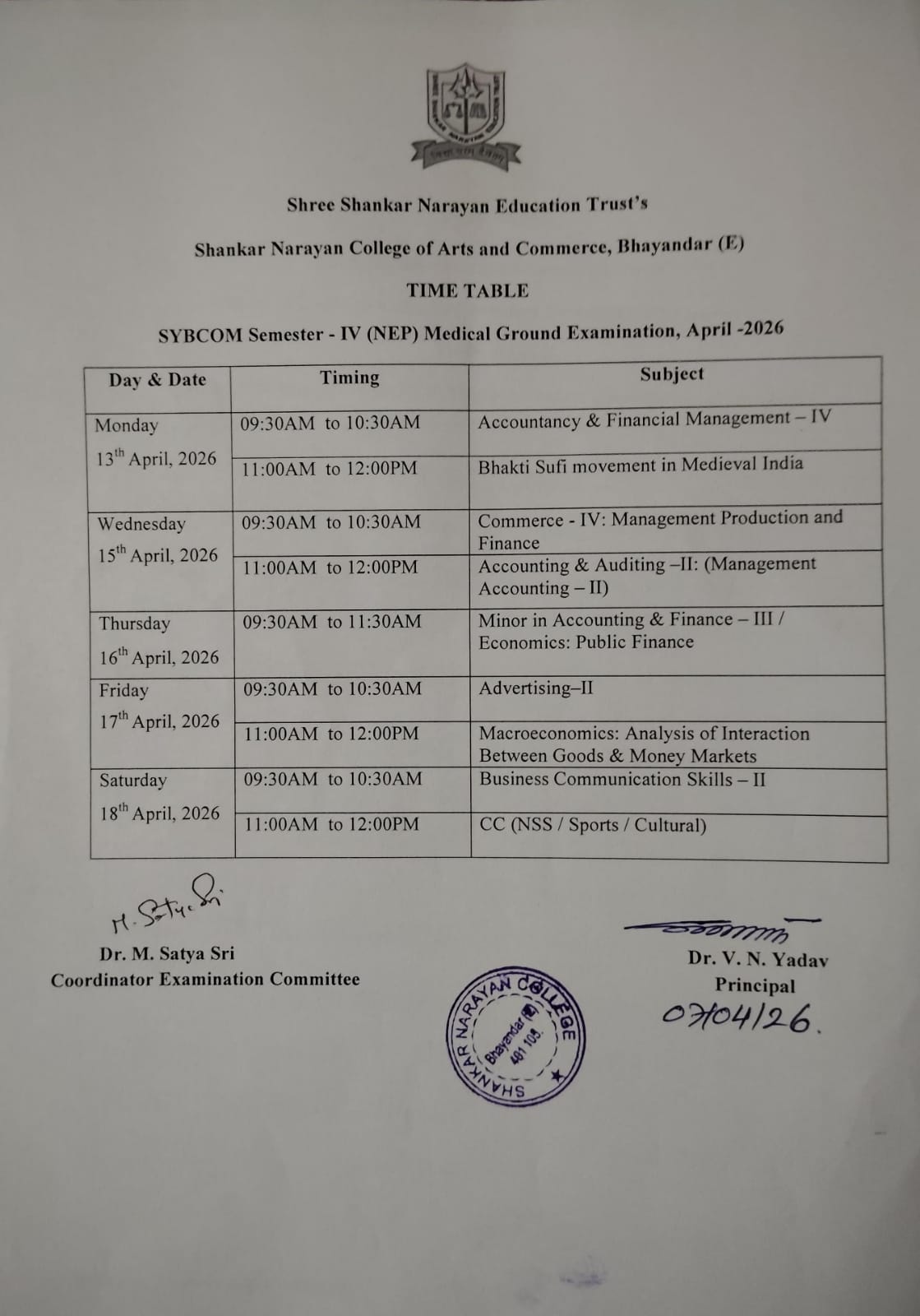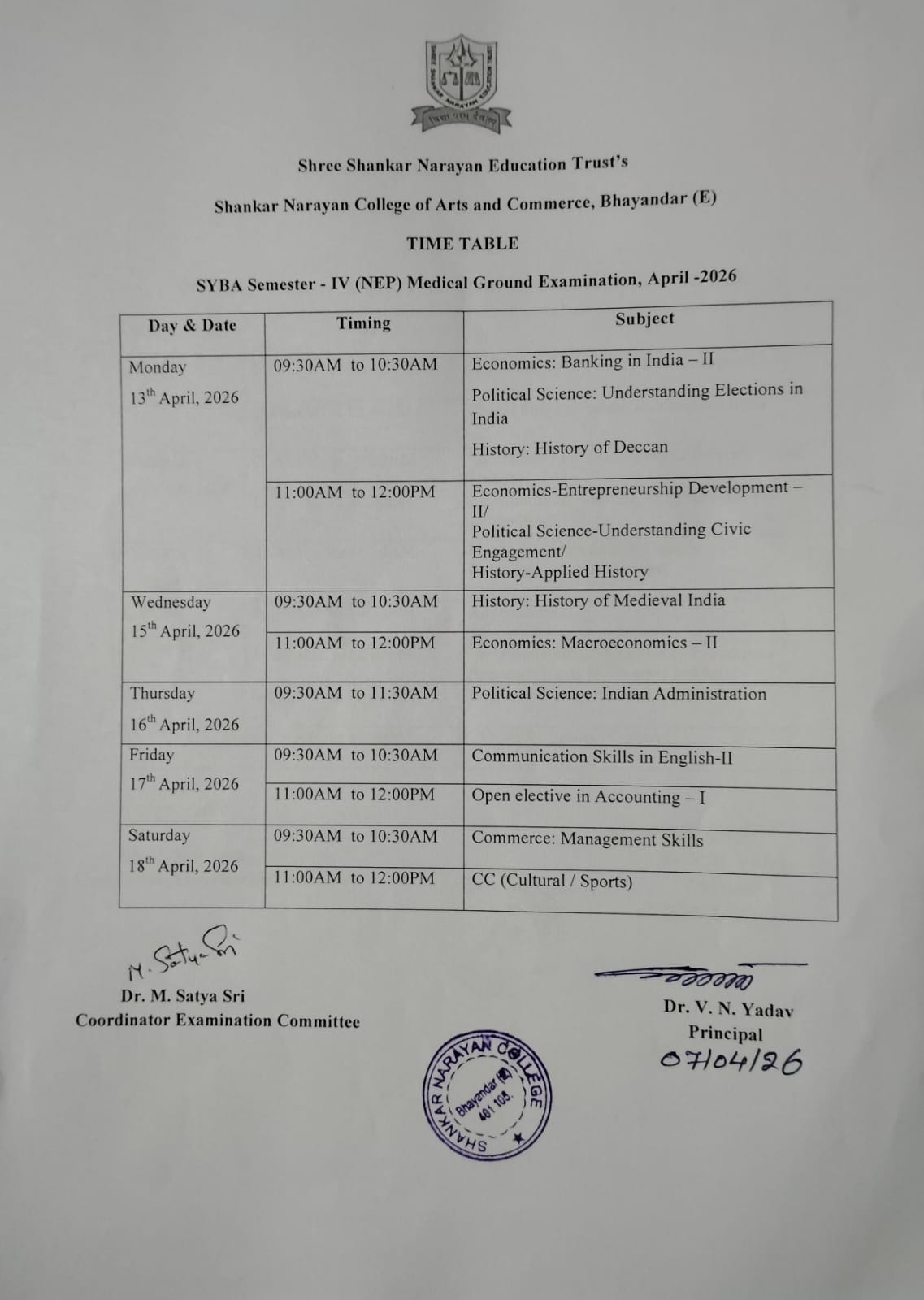 Time Table of Additional Examination on Medical Ground April-2026 (SEM II and IV NEP)